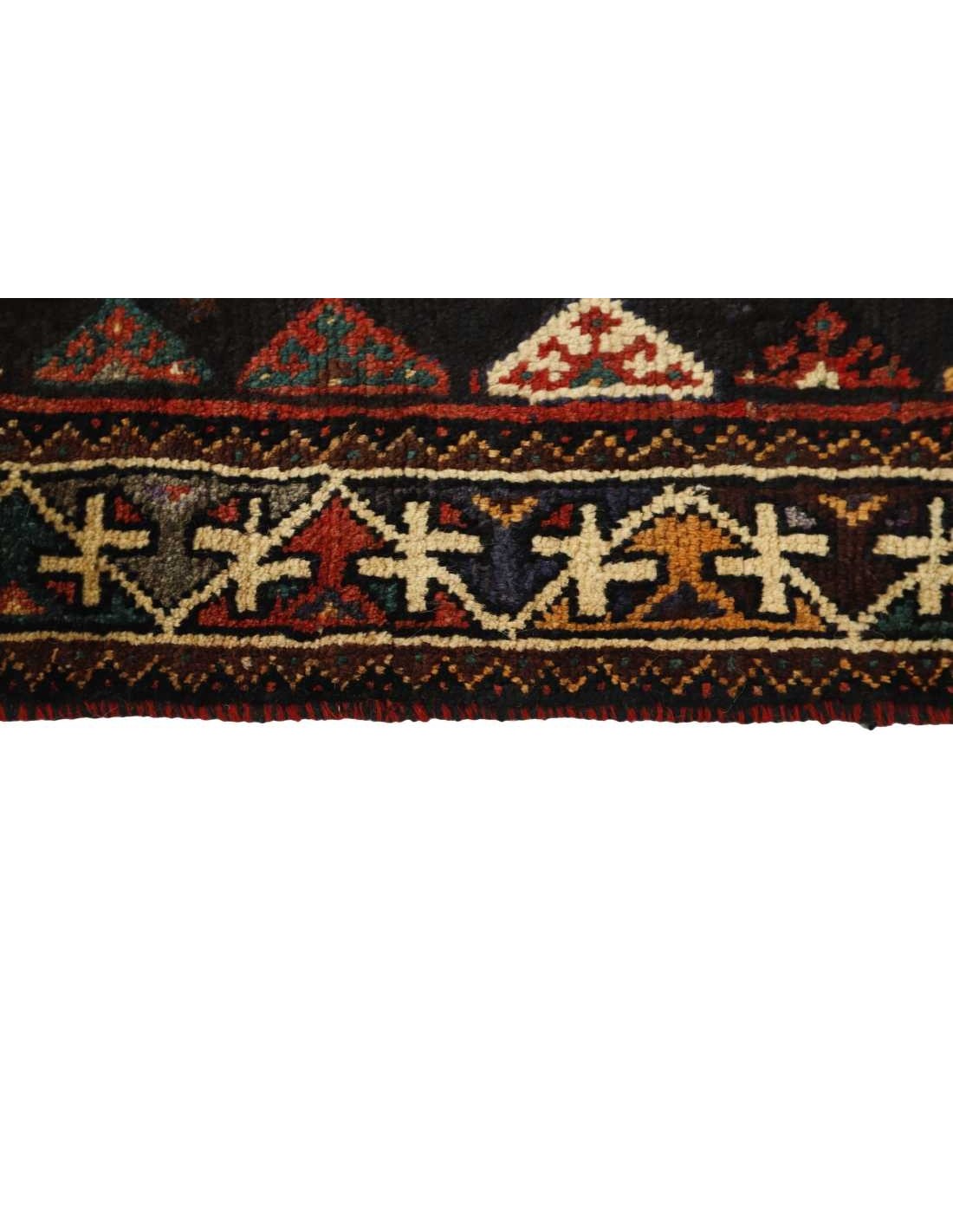 Lana morbida e flessibile, accuratamente selezionata, diventa la base di queste creazioni nomadi. I tessitori utilizzano abilmente lana più scura, talvolta integrata con pelo di capra, sia per la trama che per l'ordito, garantendo la resistenza e la longevità di ogni tappeto. I motivi geometrici, evocativi dei tradizionali motivi Kashghai, dominano i disegni, emanando un senso di eleganza rustica. Tra questi motivi, è possibile scoprire la presenza di piccoli uccelli e animali giocosi, che aggiungono un tocco di vivacità e fascino ai tappeti.